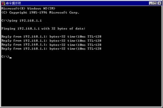 如果形如“Reply from 192.168.1.1:bytes=32 time......”则表明你的机器到网关是通畅的。